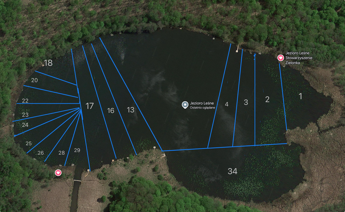 Kalendarz dostępności stanowisk na Łowisku Jezioro Lesne